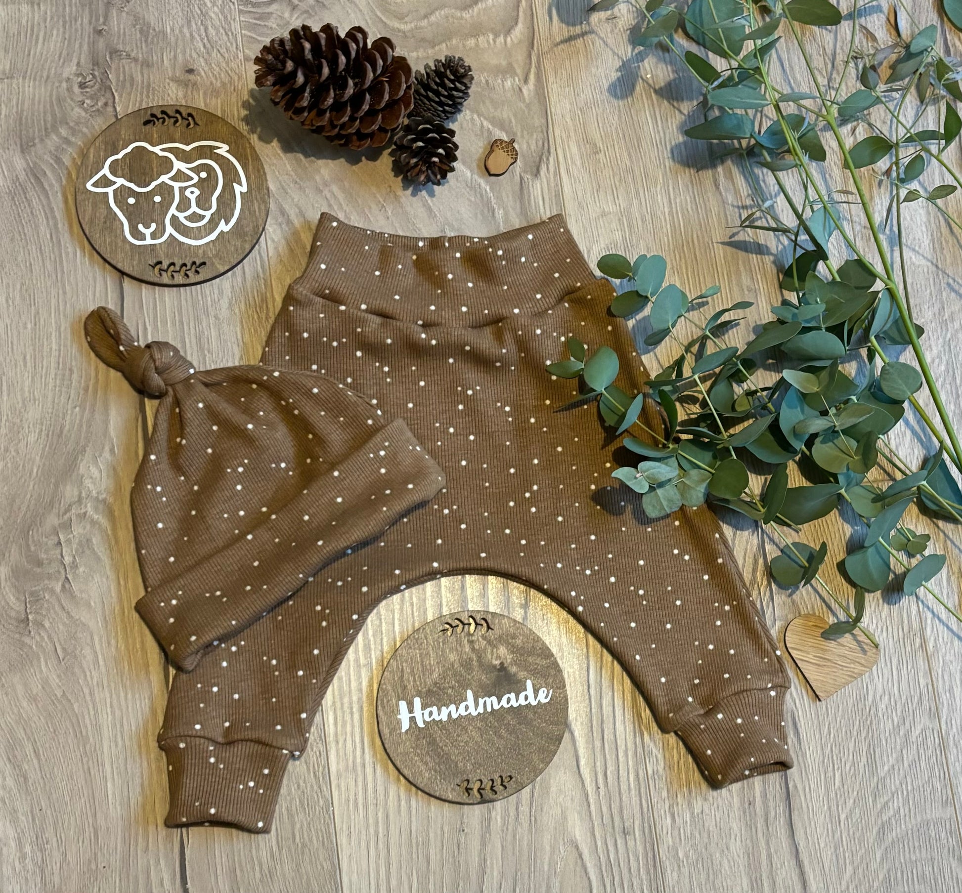 These harems provide a roomier fit than our slim-fit leggings and are ideal for nappy wearers and cloth nappies. Matching knot hat included to complete the outfit.