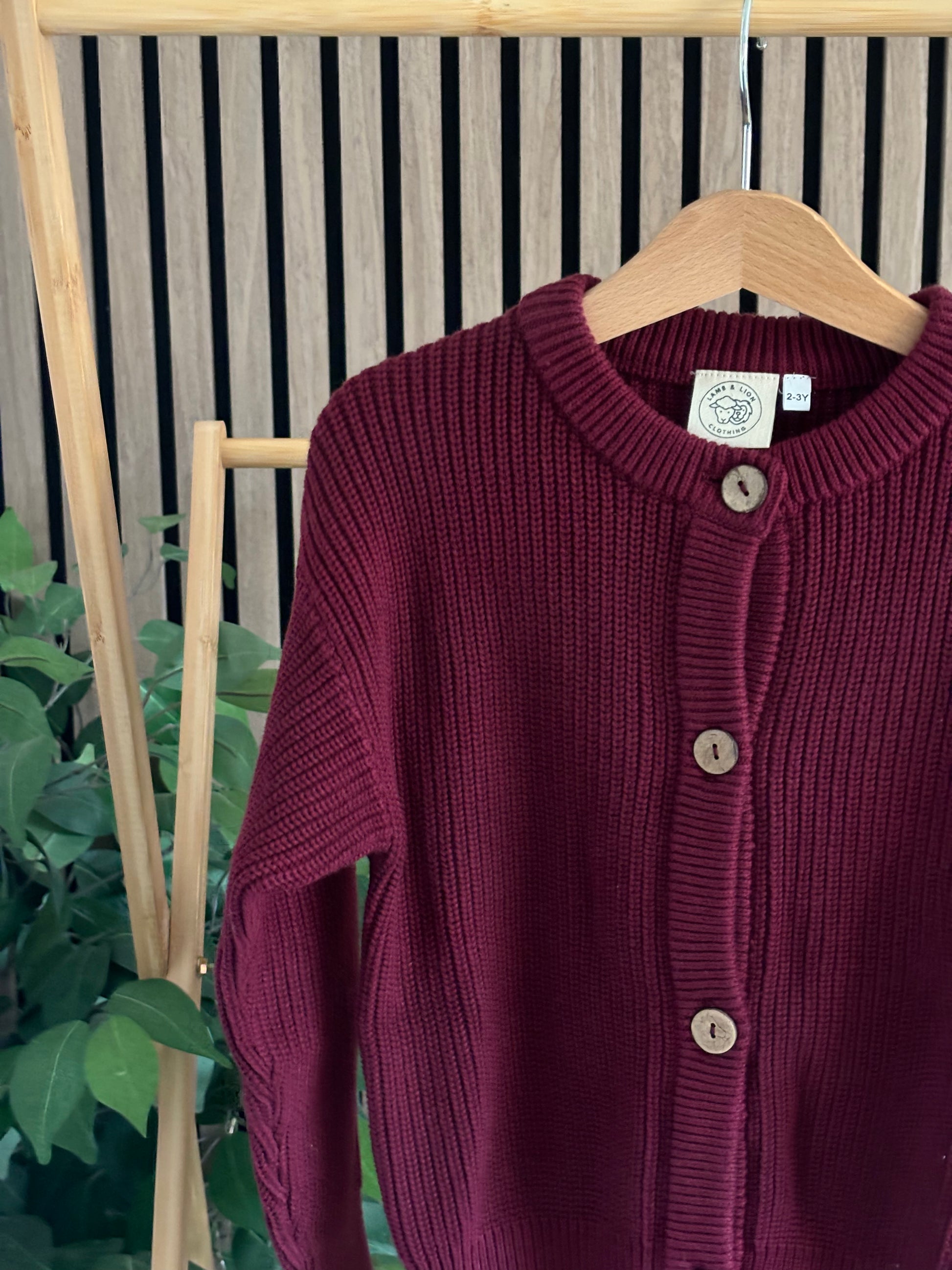 Knitted in a deep plum tone, this cardigan is effortlessly versatile. Thoughtful button-down details make it perfect for layering through every season, whether styled casually for everyday wear or dressed up for special occasions.