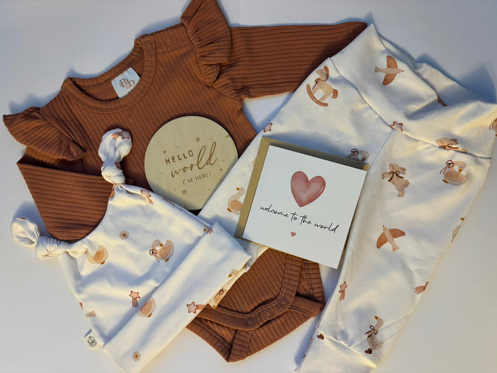 A thoughtful, ready-to-give bundle for welcoming a new little one. Each box pairs our soft, organic handmade jersey clothing with our basics range and sweet keepsakes, all beautifully wrapped in tissue and presented in a gift box. Perfectly gender neutral.