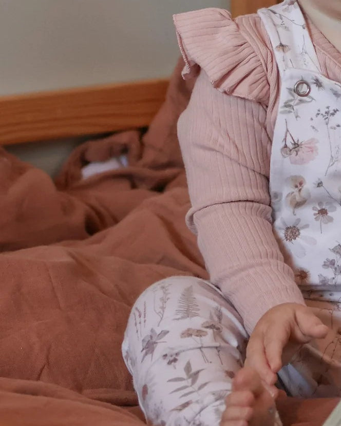 These organic ribbed tops are perfect for layering under rompers, dungarees or dresses or wearing with leggings or trousers. The subtle frill shoulder adds the perfect girly touch.