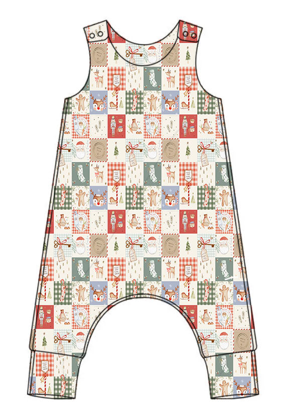 - Romper – stretchy, breathable organic jersey cotton in our Chrismas print "Christmas Patchwork" with grow-with-them cuffs.